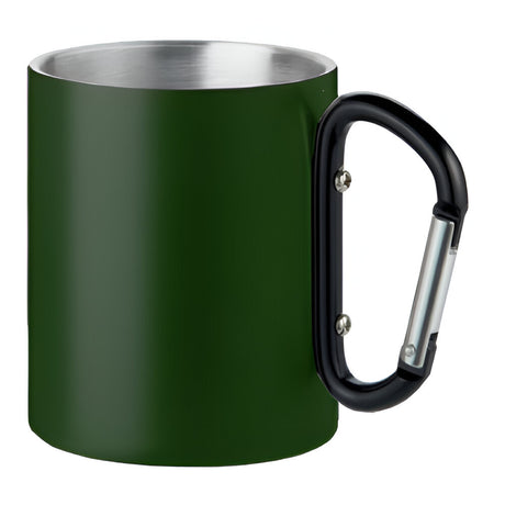 Engravable Stainless Steel Mug – Deep Green with Black Carabiner Handle – 300ml