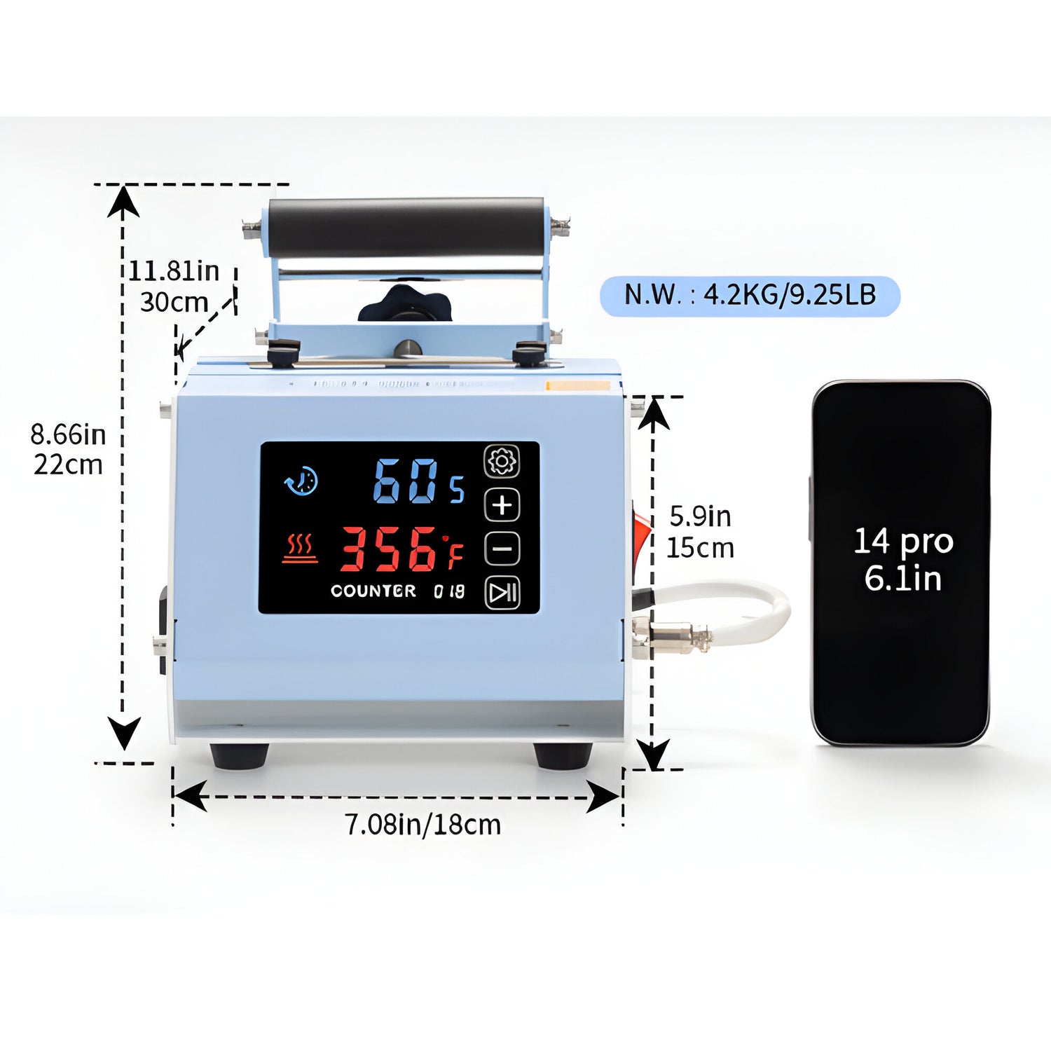 - Bright LED digital display makes setting time and temperature a doddle!