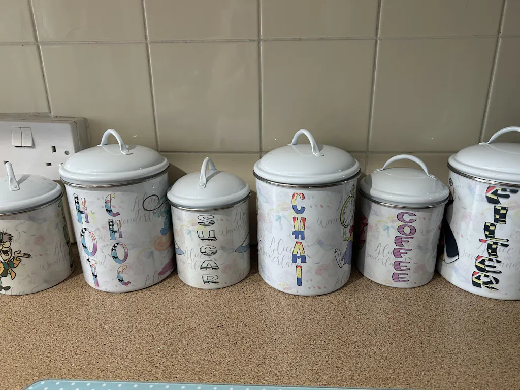 ✓ Spacious Storage: The larger size offers ample room for storing a variety of kitchen items like coffee, sugar, and biscuits.