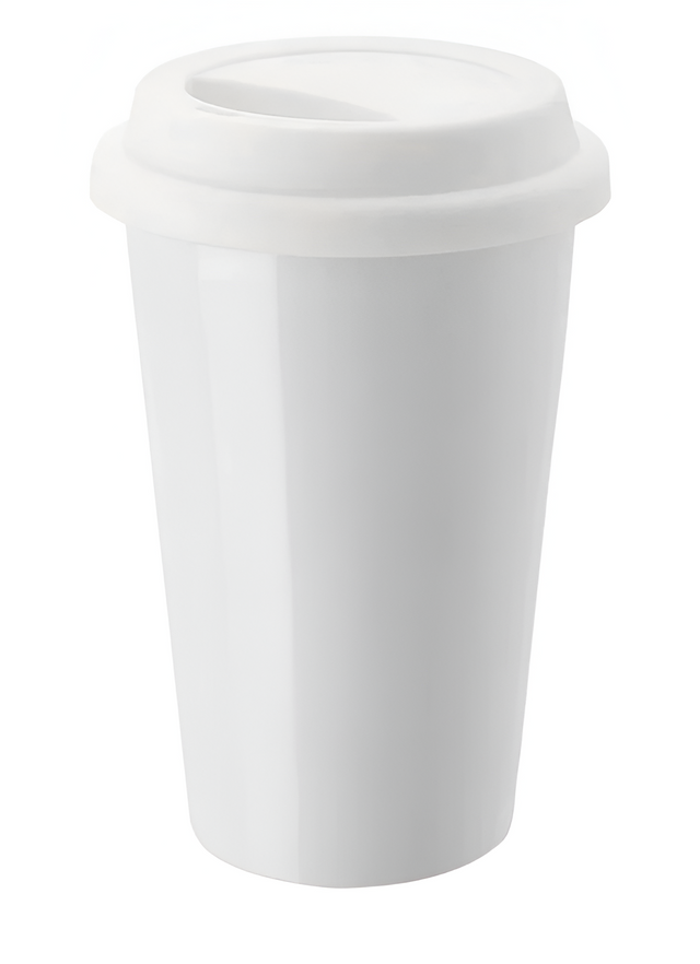 The perfect sublimation-ready ceramic travel mug for coffee lovers on the go! This double-walled 12oz ceramic mug is designed to keep drinks hotter for longer while offering a sleek, high-gloss surface for sharp, high-quality prints.