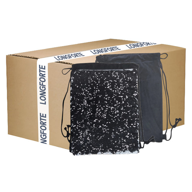 VOLLER KARTON - 50 x Paillettenbeutel mit Kordelzug - 38,5 cm x 30 cm - SCHWARZ