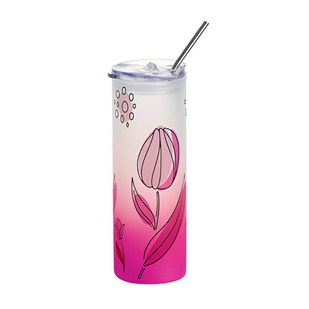 Water Bottles - Glass - Skinny - Frosted (PINK) 750ml Tumbler with Plastic Lid - Single is backordered and will ship as soon as it is back in stock.