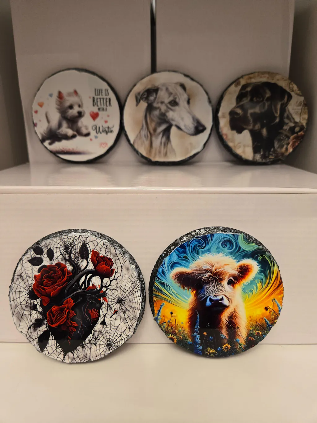 Sublimation Photo Slate Coaster - 10cm - ROUND - Glossy Finish - Single is backordered and will ship as soon as it is back in stock.