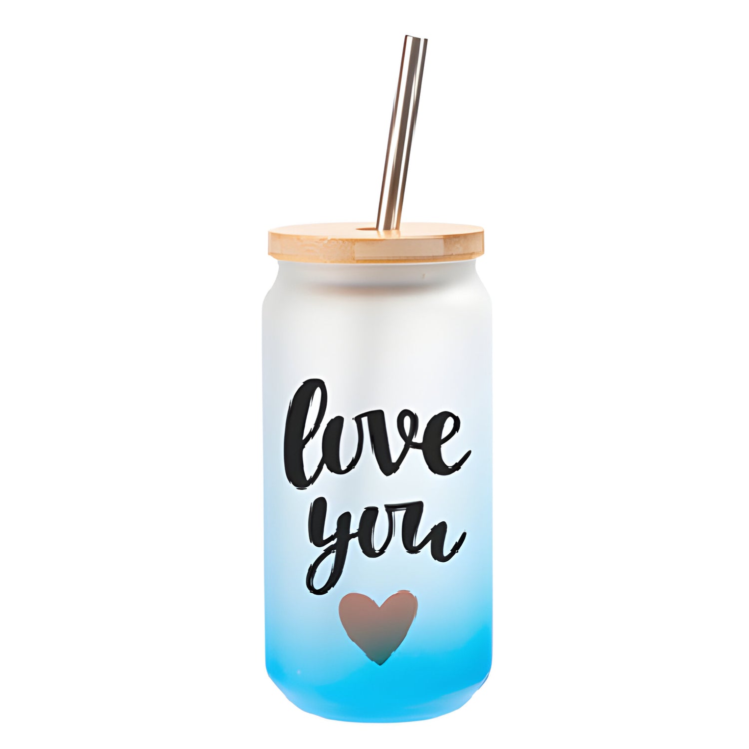 Mugs - Glass - 550ml Glass Jar with Bamboo Lid & Straw - LIGHT BLUE