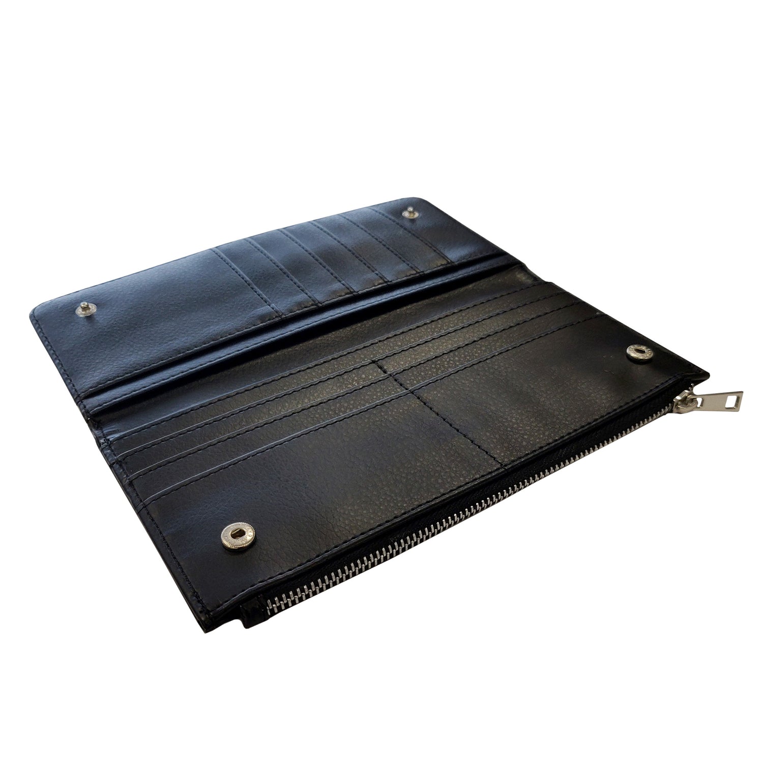 • Wallet comes with 12 slots for credit cards and 2 slots for notes cheques receipts and tickets etc and zip-up coin compartment.