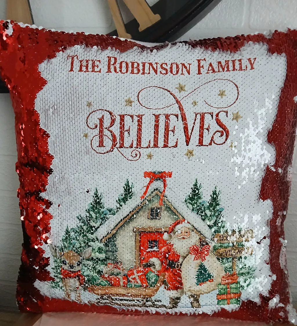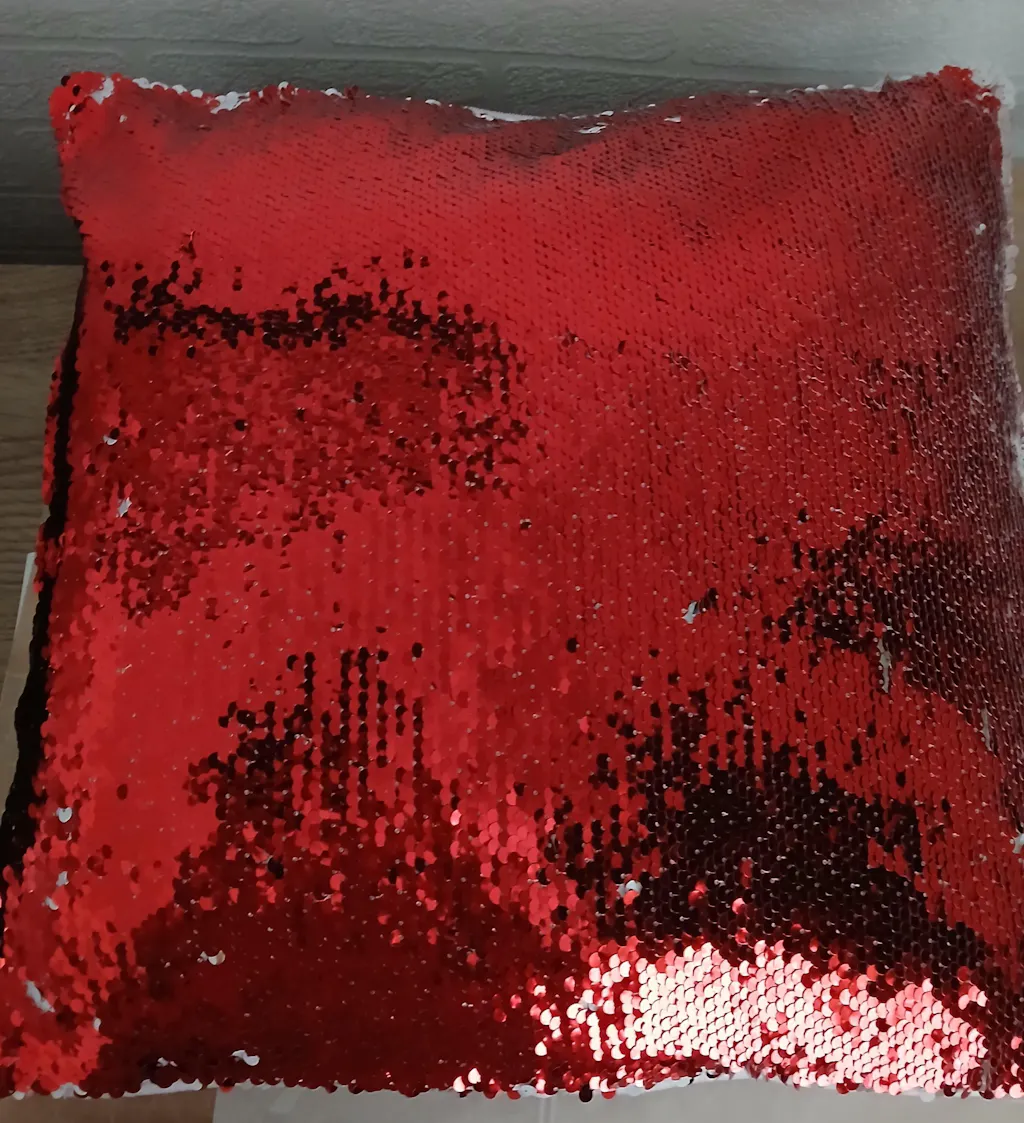- Housse de coussin recouverte de paillettes rouges accrocheuses, adaptée à la sublimation