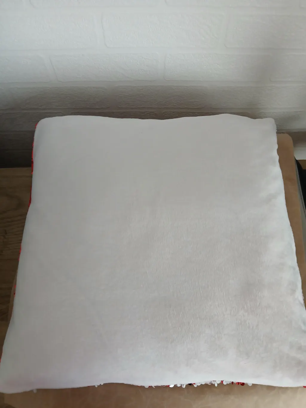 - L'arrière du coussin est fabriqué à partir d'un tissu blanc brillant semblable à du velours (VEUILLEZ NOTER AVEC CE STOCK ACTUEL LE CÔTÉ NON SEQUIN EST BLANC ET NON ROUGE)