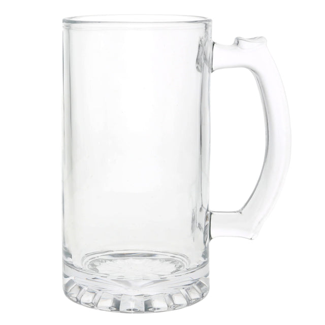 Each 16oz stein features a trigger-style handle that sets it apart from standard mugs – making it perfect for custom gifts, corporate branding, or barware collections. The high-quality clear glass ensures your sublimation designs appear sharp and vibrant every time.