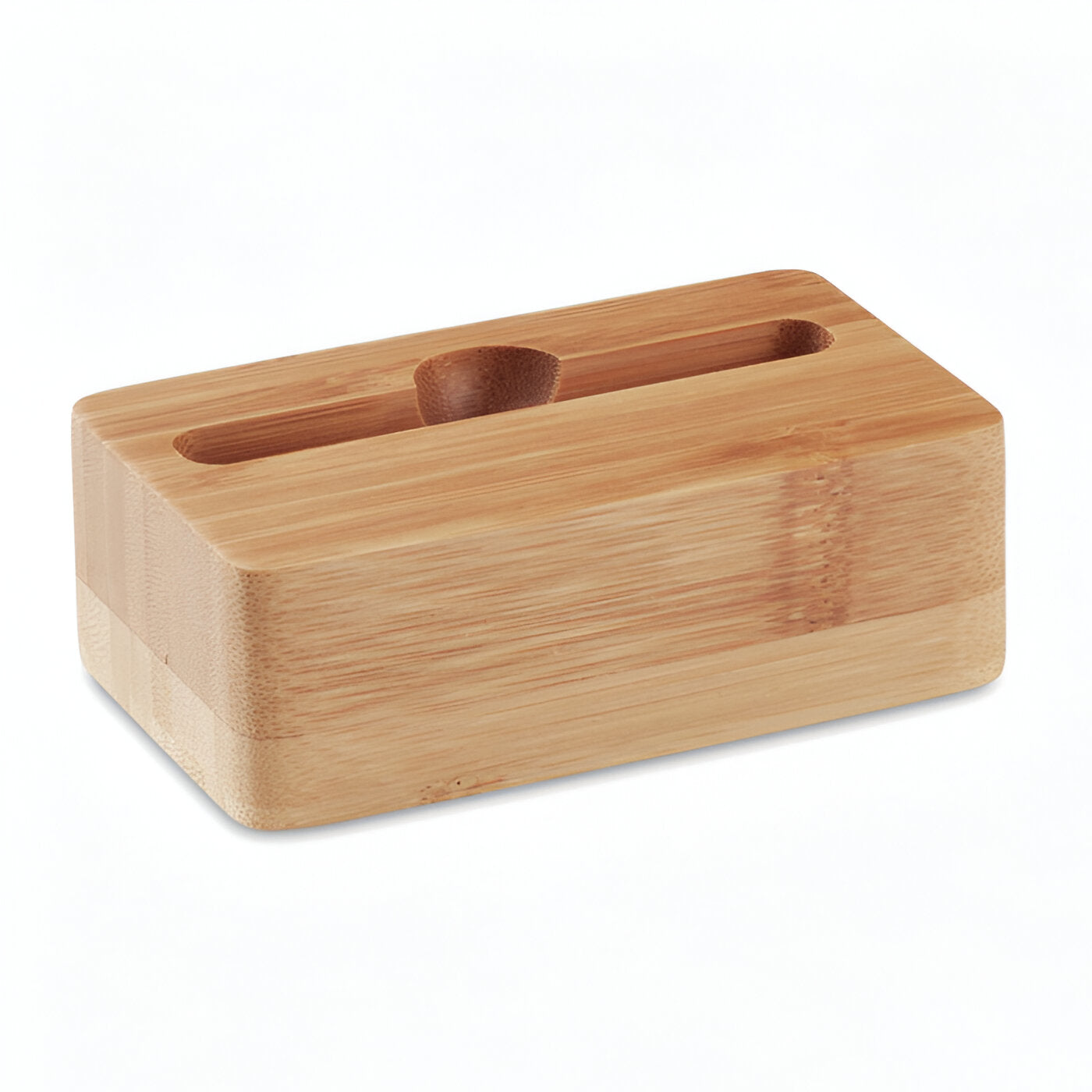 Enjoy music, videos, and hands-free browsing with our Bamboo Smartphone Stand with Passive Amplifier – a clever, cable-free solution that boosts your phone’s sound using nothing but smart design and sustainable materials. Crafted entirely from natural bamboo, this stand holds your smartphone upright while a cut-out sound chamber beneath the speaker naturally amplifies the audio, offering a richer listening experience without electricity, batteries, or wires.