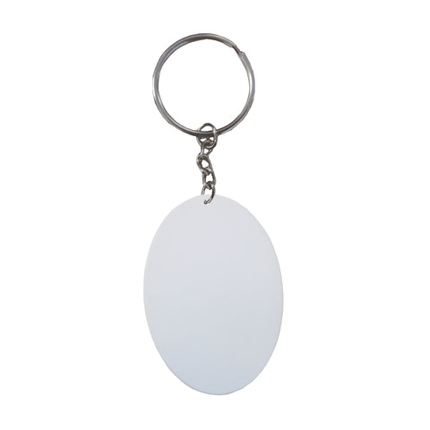 • Chunky white polymer sublimation keyring in an oval shape made from high-quality polymer