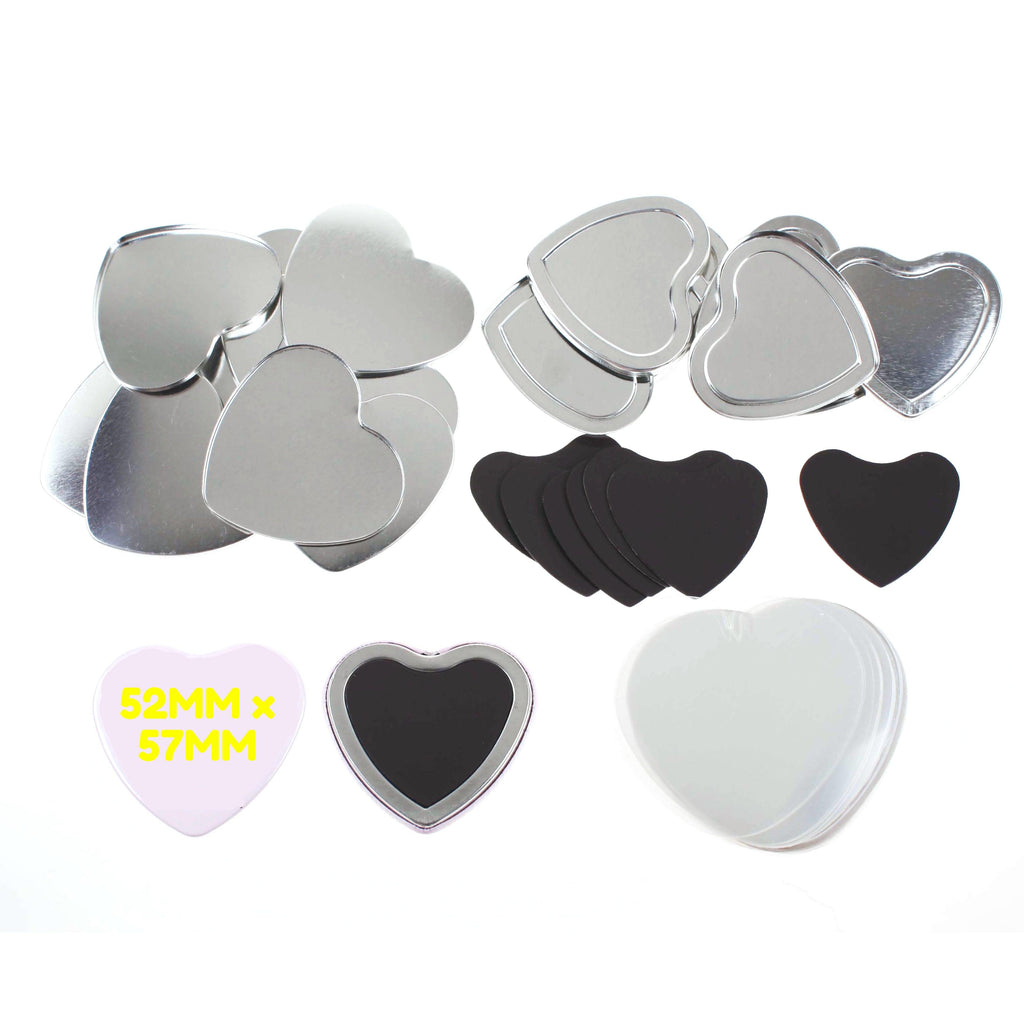 Pack of 100 Blank 53mm x 57.5mm Heart Badge Making Components with Rubber Magnet