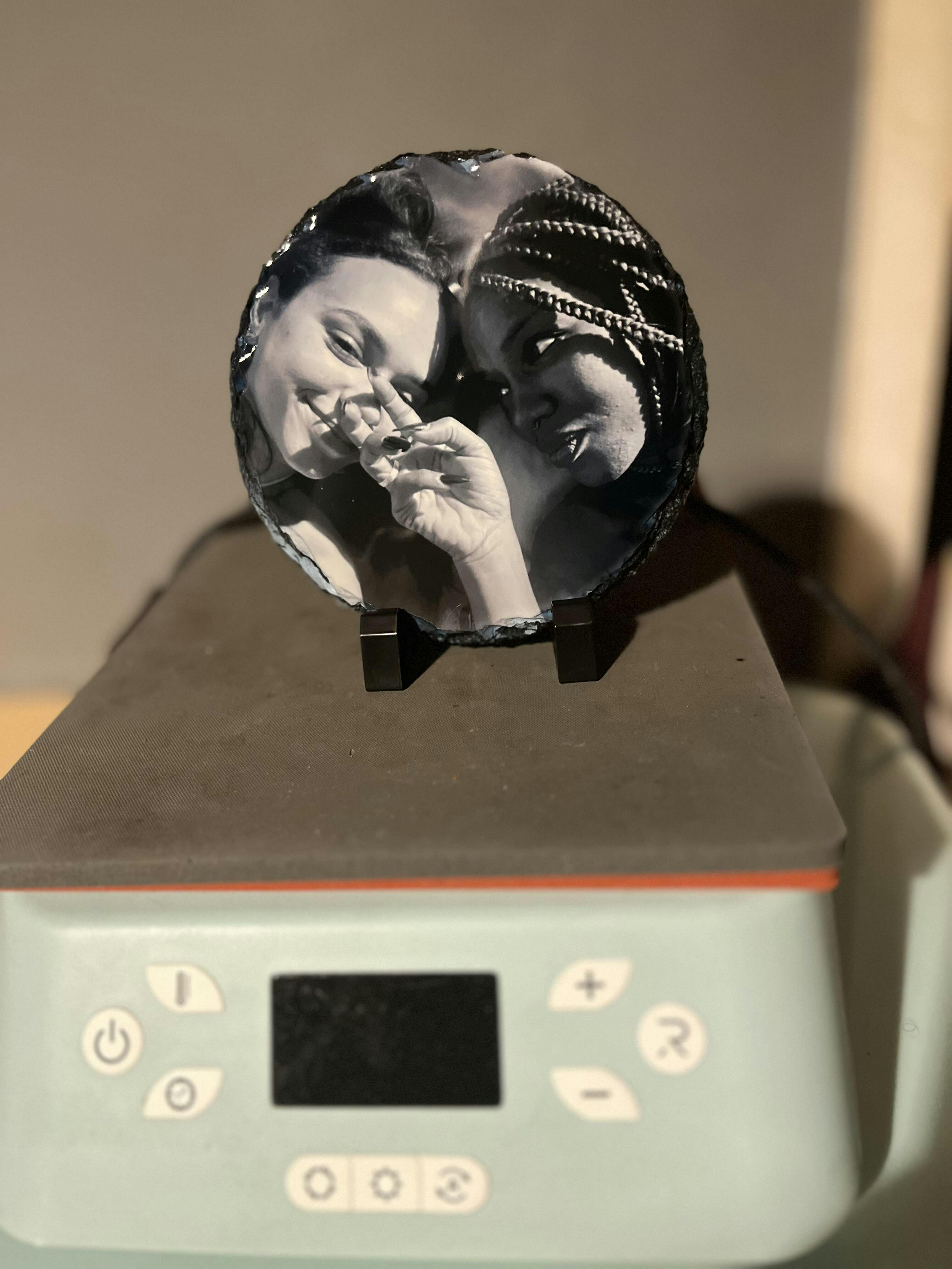 We always recommend using our 2mm thin silicone FAB Pad so that you can sublimate on the rough edges of the slate to create a seamless image.