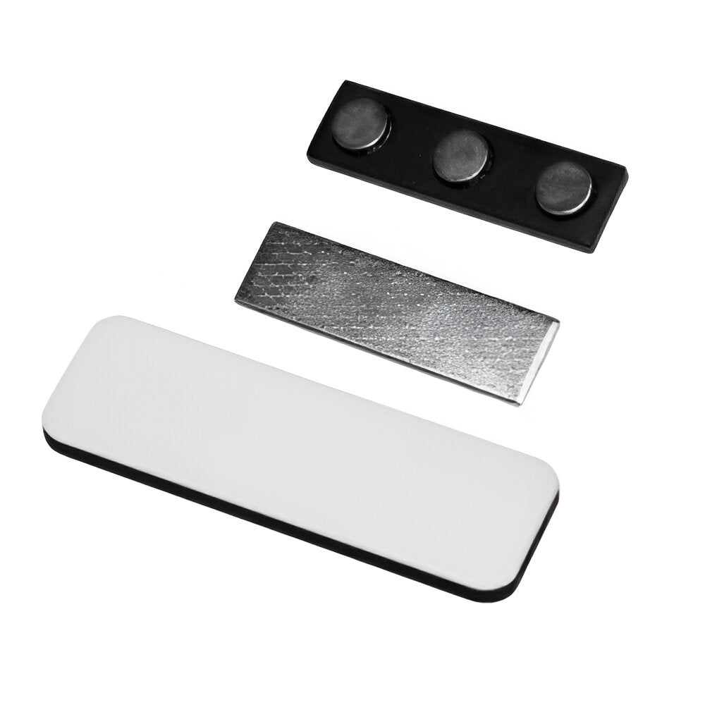 Unlike traditional clip or pin badges, this version features a secure magnetic backing—easy to attach to shirts, blazers, and jackets without leaving pin holes or damaging fabric. The slim, rectangular profile makes it ideal for workplace uniforms, conferences, trade shows, and more.
